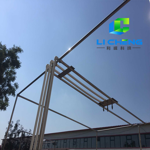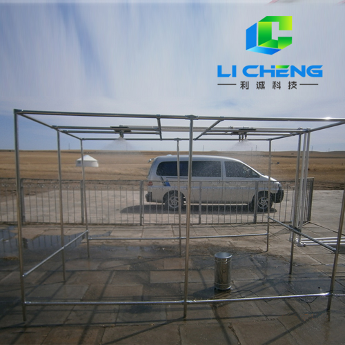 熱電渡管,管徑為40 mm,立柱式的架設(shè)。降雨層面分成三個層面??傮w四路系統(tǒng),每種系統(tǒng)的一路和另一路對應(yīng)成疊加降雨方式。