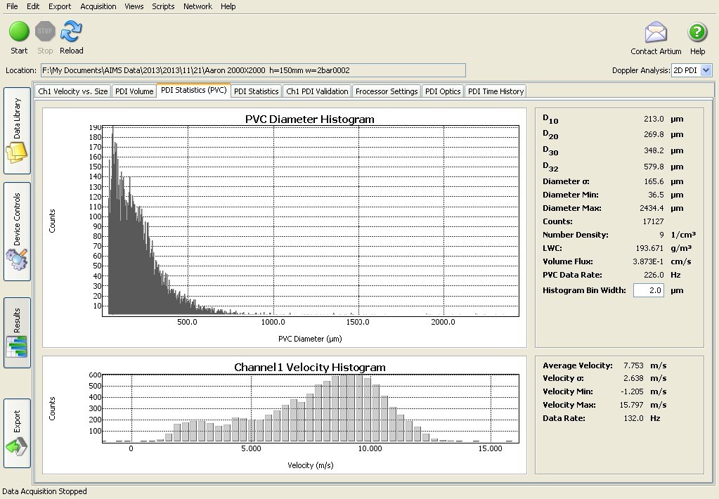 2 Bar下噴嘴顆粒度數(shù)據(jù)